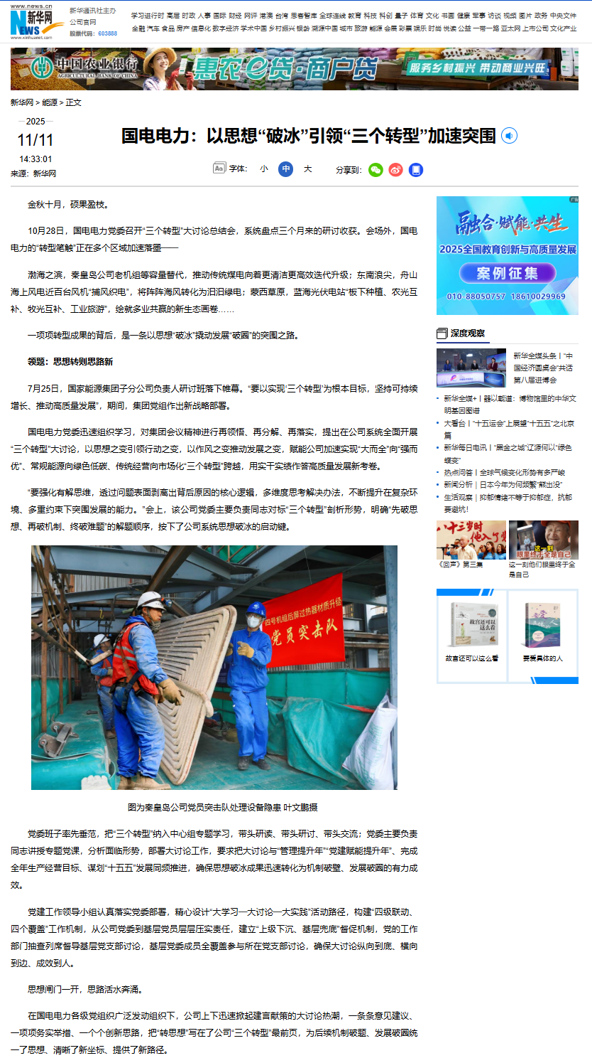 新华网:国电电力:以思想“破冰”引领“三个转型”加速突围金秋十月,硕果盈枝。10月28日... [详情]