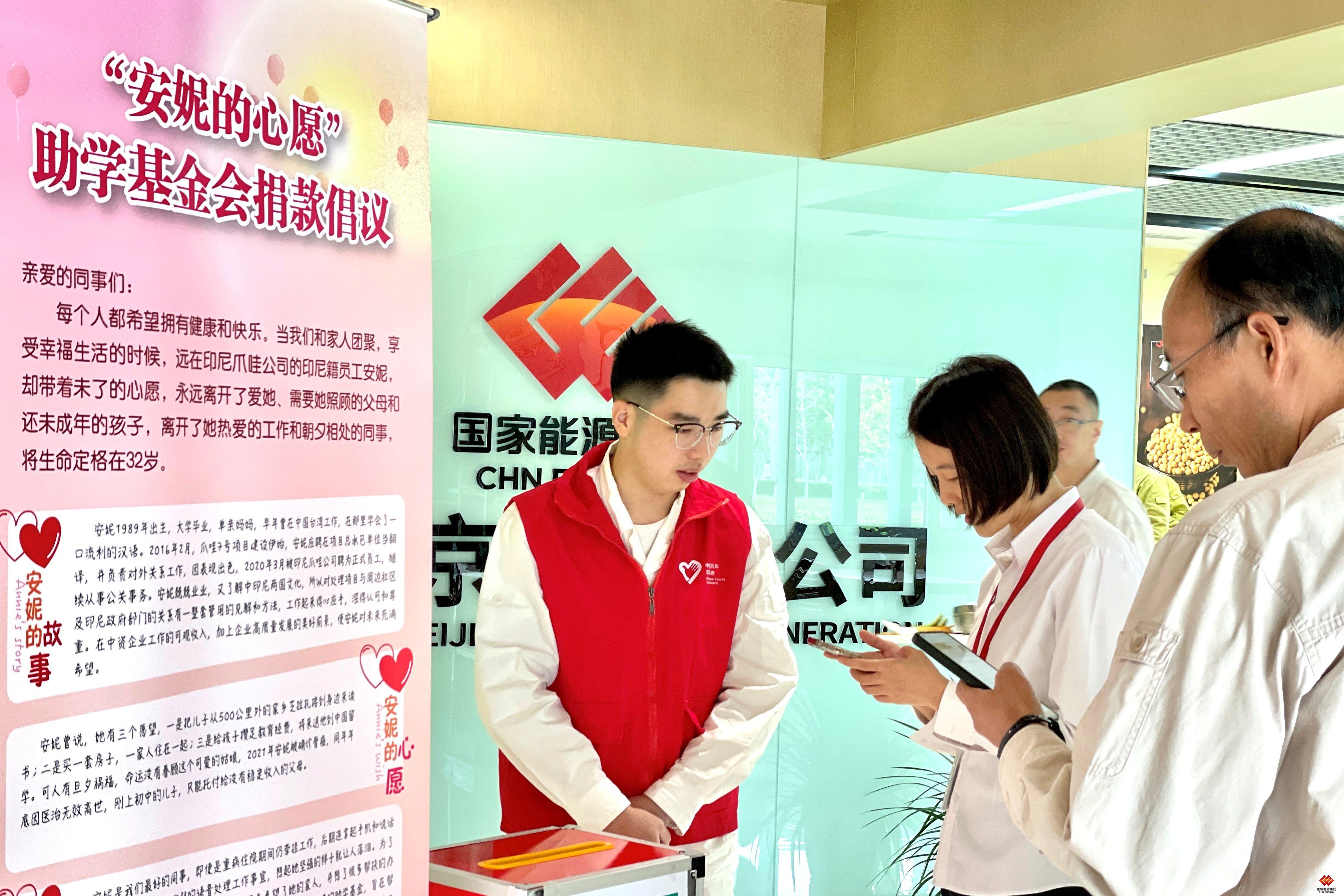 图为国能青年志愿者为“安妮的心愿”助学基金捐款
