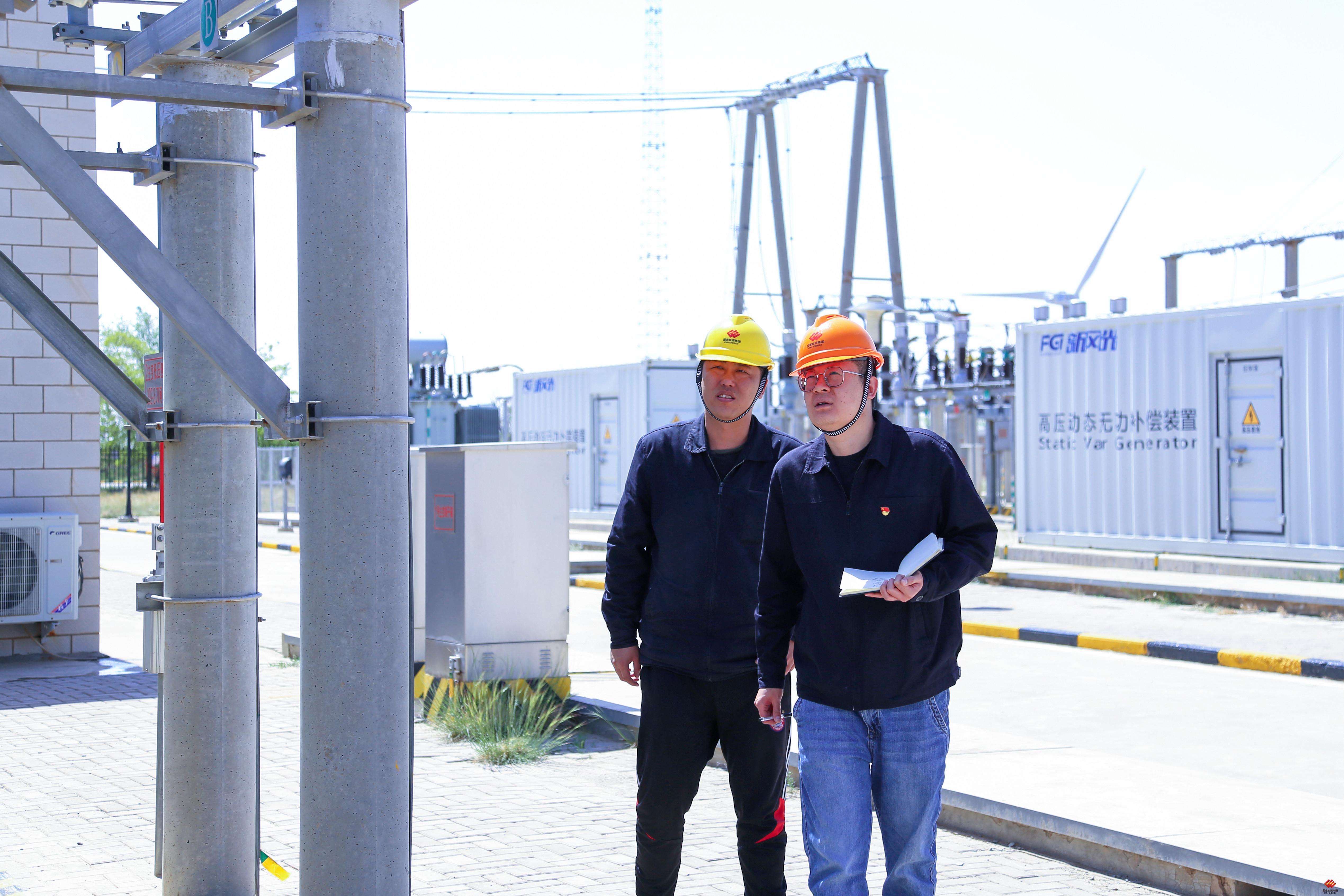 图为该公司牛首山风电场运维人员在巡视升压站。该公司持续深化设备缺陷闭环管理与安全隐患排查整治,利用无风、小风天气窗口,主动开展安全生产专项排查,着力补齐短板、堵塞漏洞。艾思彤 摄